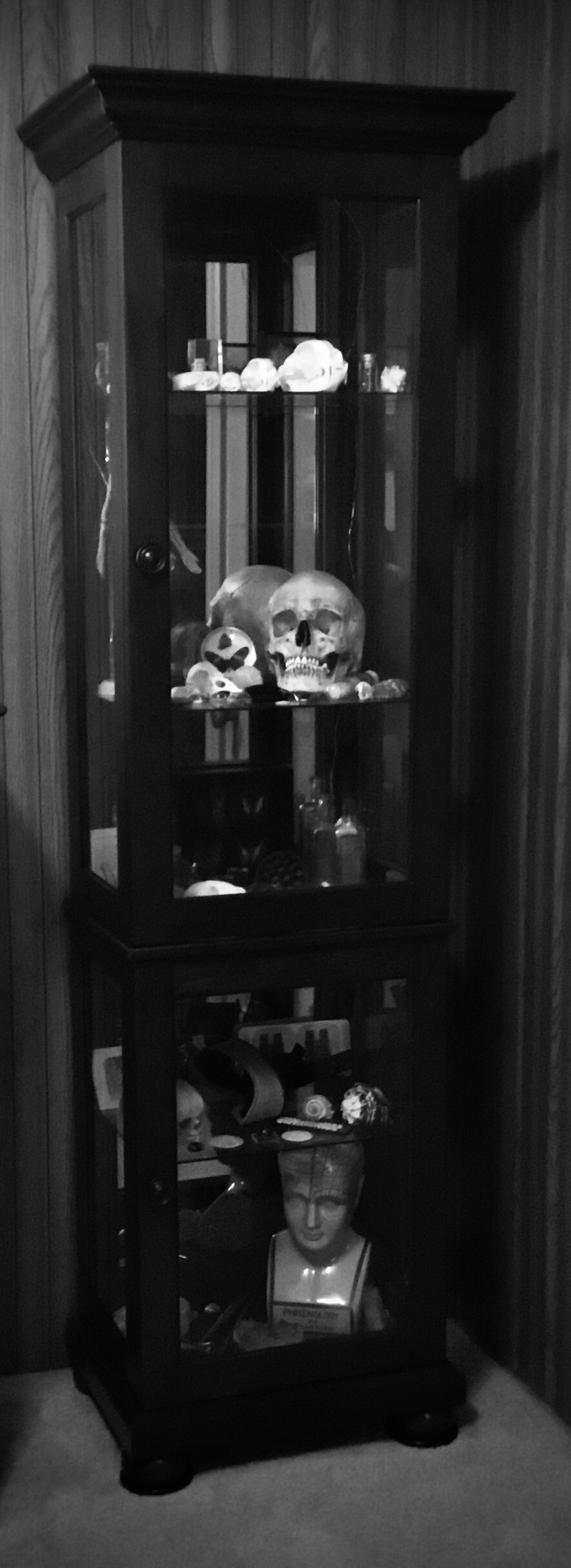 I have 9 skull replicas in my collection so far. Skull replicas are made by taking a cast of a real skull and making copies (usually out of resin). I do consider them works of art (which is another reason I prefer them over real skulls). It does take an artist to make a good quality cast and often you will find the skulls painted to make them look more realistic. In the following images, Iāll walk you through my curio cabinet from top to bottom and share where I purchased each item.