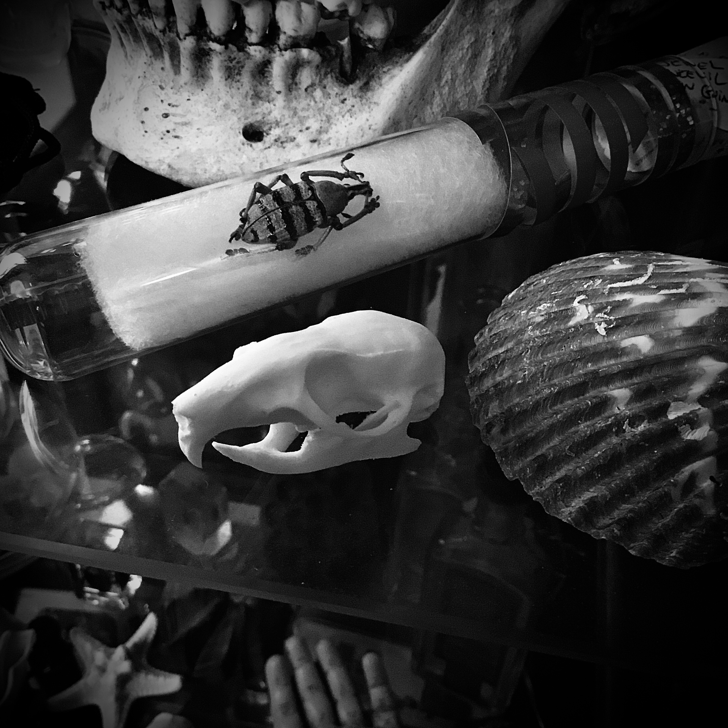 These were concerns when I started my own cabinet of curiosities. I also wanted skulls in my collection to use as drawing reference. Photos are great references for drawing, but are sometimes limited if you want that perfect angle or you want to study different types of lighting.