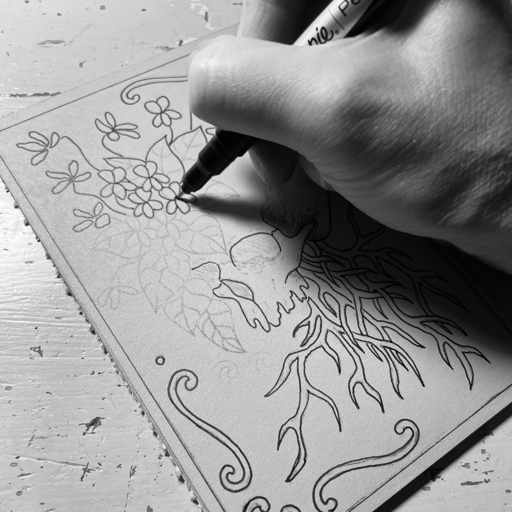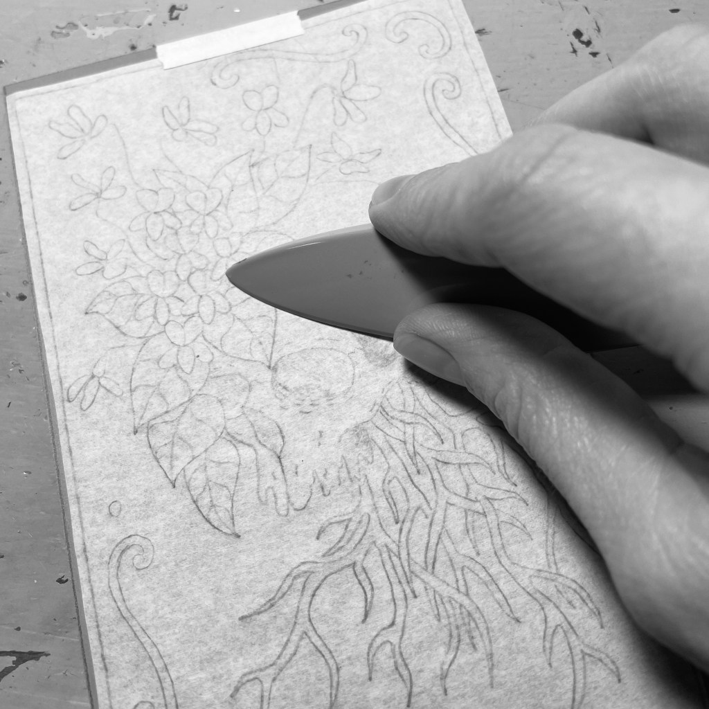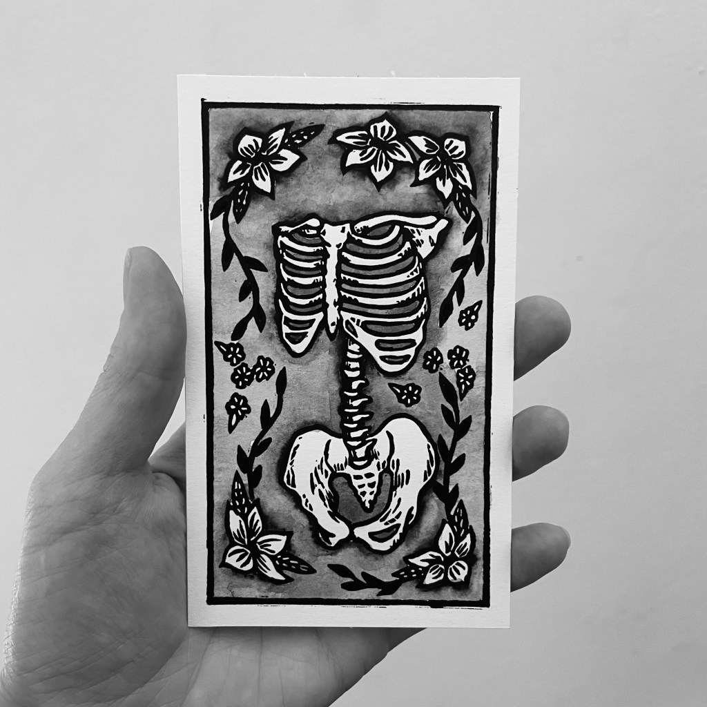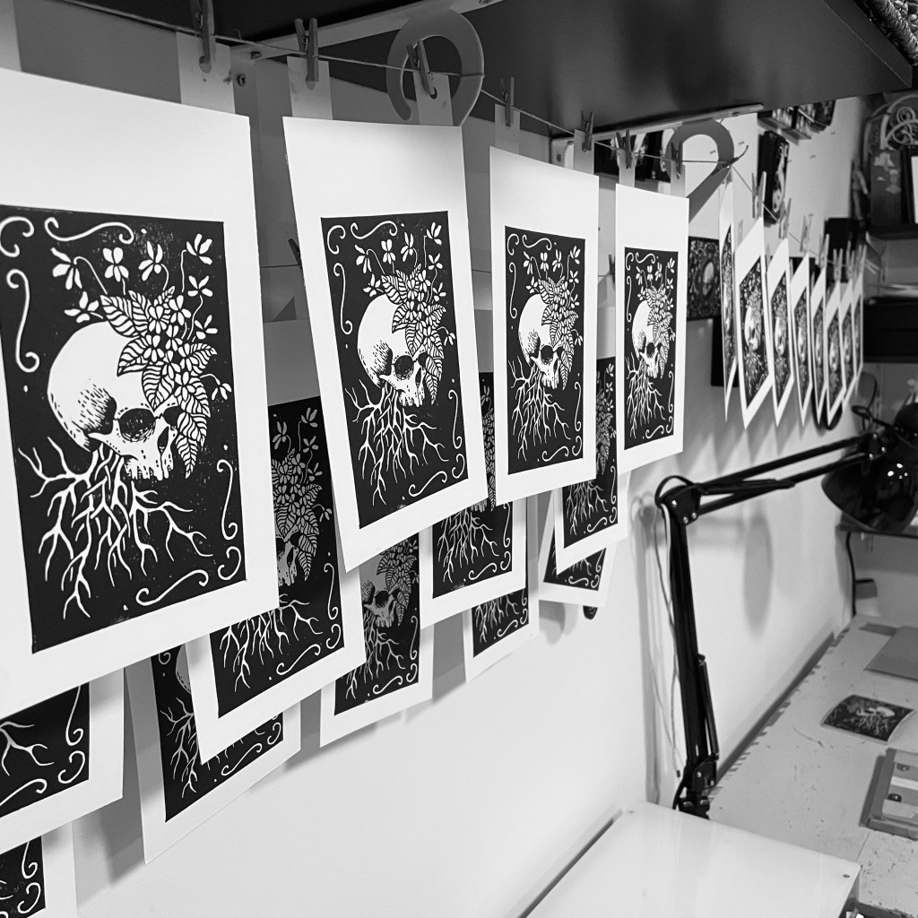 There also seems to be limitations as to how much detail I can get when carving linoleum when I work in such a small format. It is quite difficult to get the lines as thin as an ink pen. But I continue to work on technique and design so I can enhance the detail as much as possible. I also am working on accepting the fact that they are two different mediums and it is ok that they don’t look the same. Both types of prints have their unique and beautiful qualities.