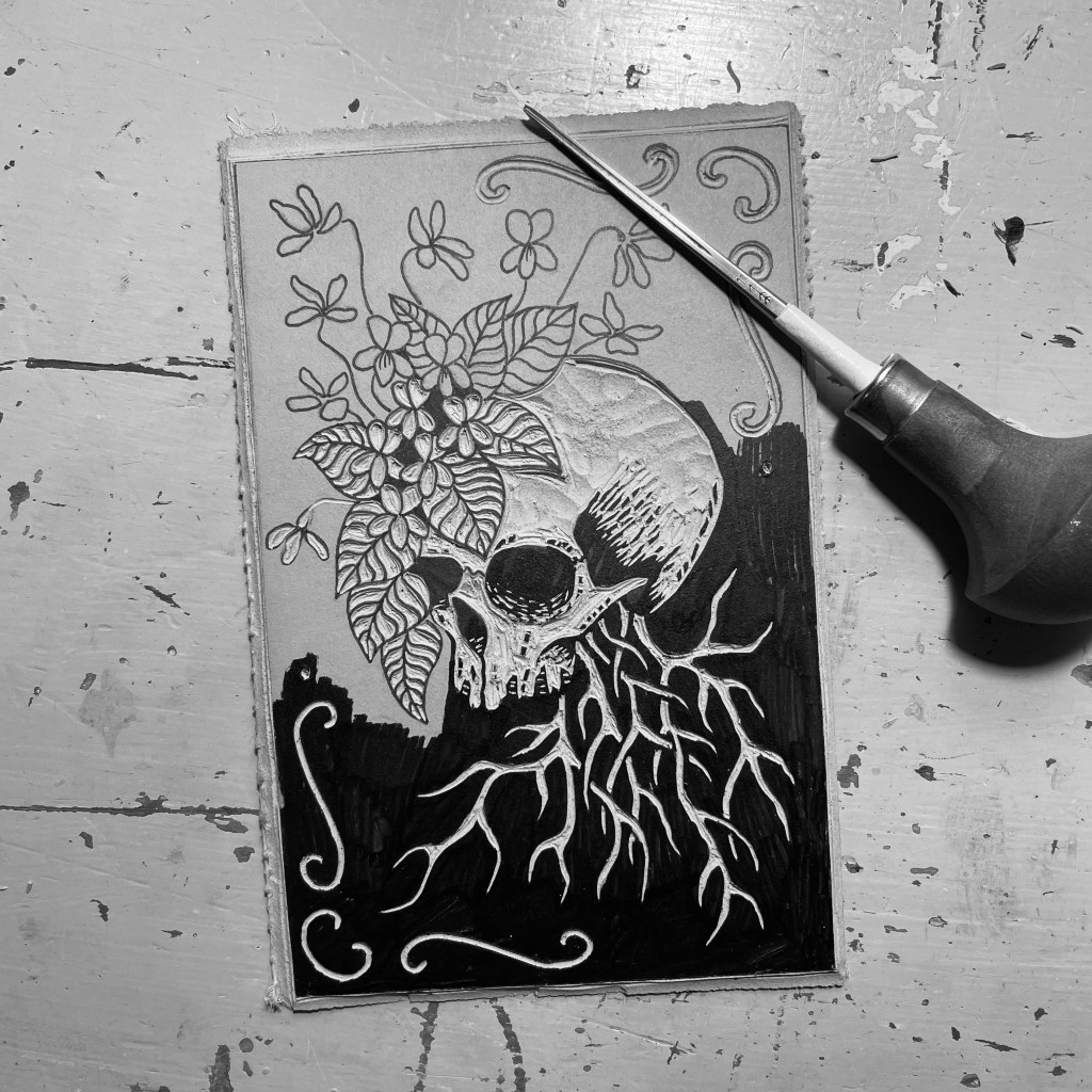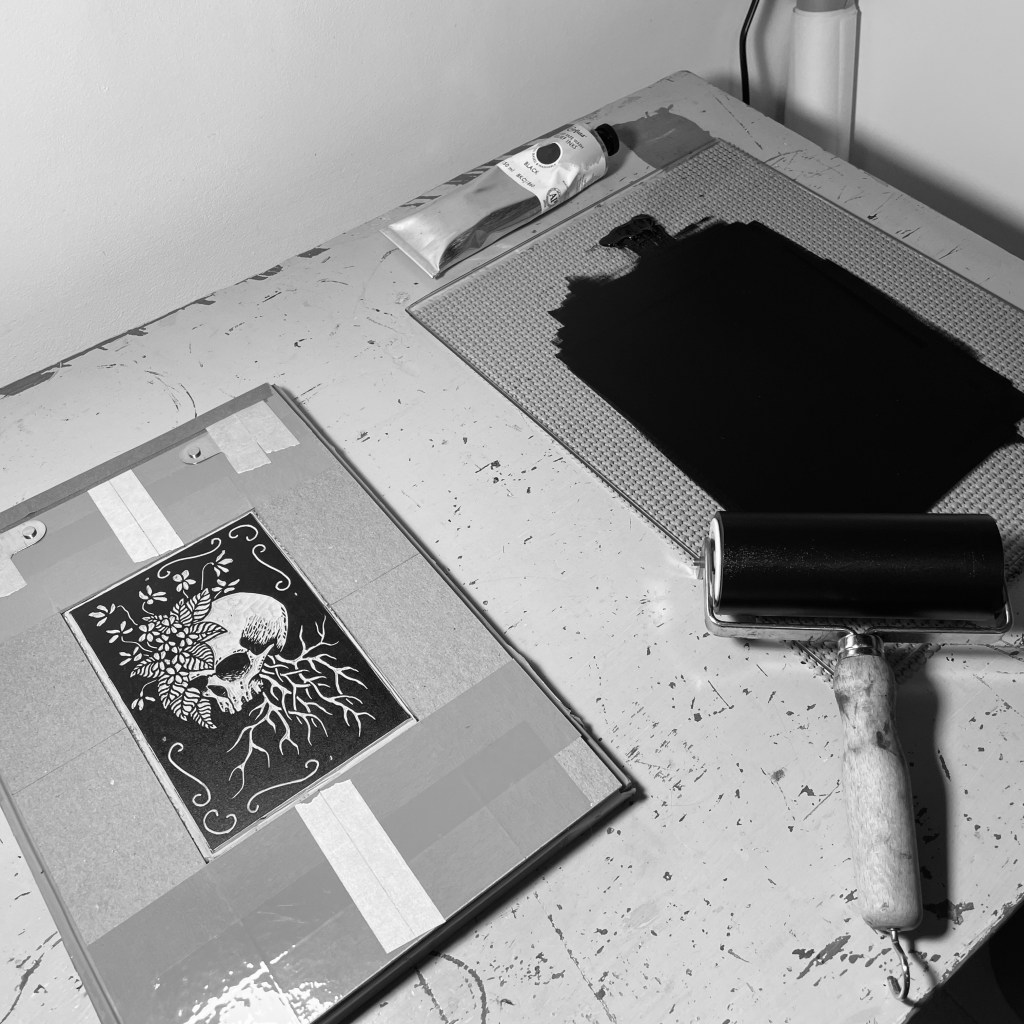 Linocut is a type of relief printmaking which is very much like woodcut. A drawing is transferred to linoleum and the image is carved out. In relief printmaking, the artists cuts away everything that they do not want to print. The image is in relief, hence why we call linoleum and woodcut relief printmaking. The artist then inks up the plate, covers it with paper, and then presses the image onto the paper. They can do this by hand burnishing or by using a printing press. Artists are also concerned with the longevity of their prints and use archival paper and light-fast inks.